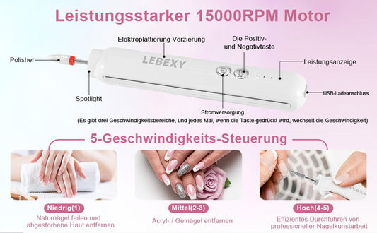 Elektrische Nagelfräser Maniküre Pediküre Kabellos Set | Nagelfeile Fräser Schleifpolierer für Gelnägel | Nagel Fräsmaschine Nail Drill | Aufladbar für Nagelhaut Shellac Acryl