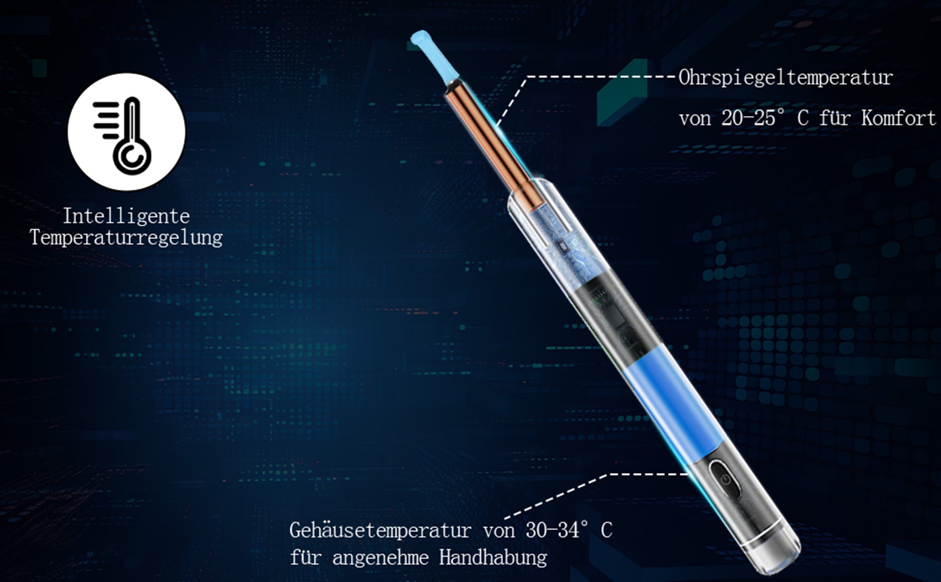 Schmerzfreie & Komfortable Ohruntersuchung - Die intelligente Temperaturregelung im Ohrkamera-Design sorgt für eine konstante Temperatur zwischen 25-30°C während der Anwendung. Intelligente Temperaturregelungstechnologie vermeidet Unannehmlichkeiten durch zu niedrige Temperaturen und sorgt für ein angenehmes Untersuchungserlebnis
